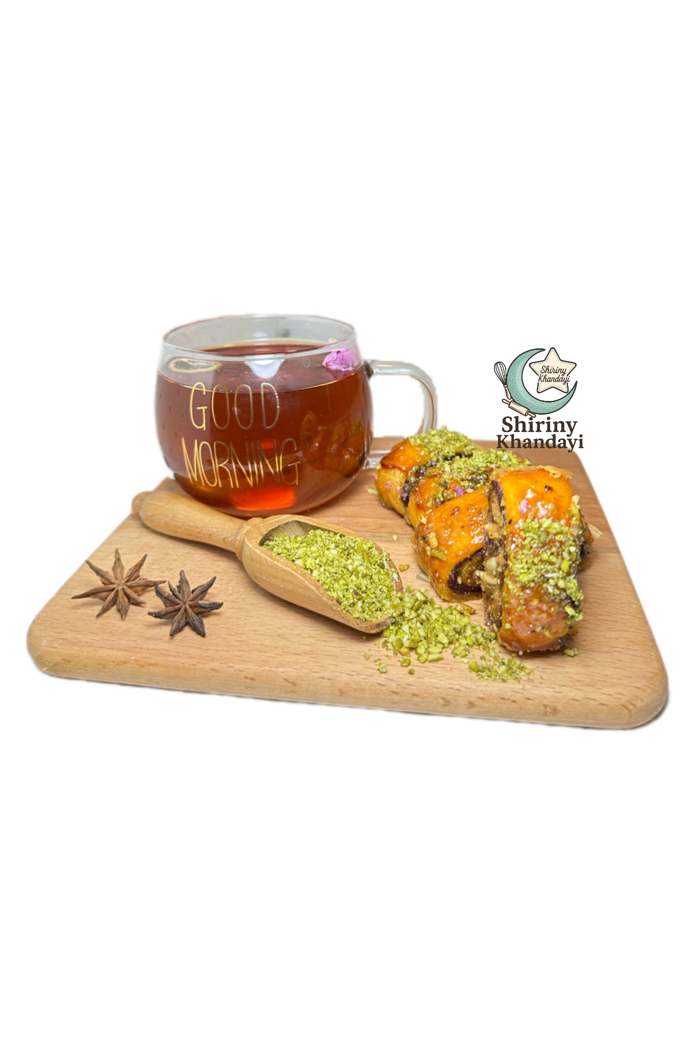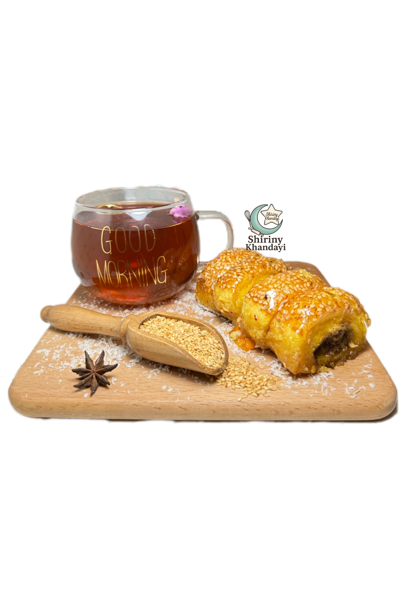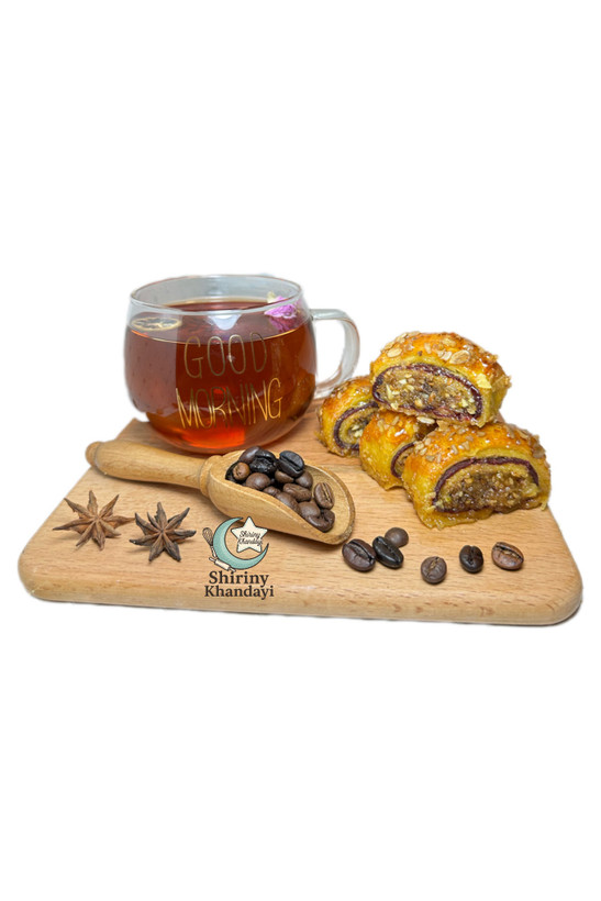 باقلوای روسی «شیرینی خاندایی» با بافتی نرم و شیرین، یکی از شیرینیهای خاص و مجلسی است که با بهترین مغزها و طعمدهندهها تهیه میشود. روی این شیرینی خوشمزه با ترکیبی از پودر پسته 🌿، تخمه 🌻، گردوی تازه 🌰، گل محمدی خشک 🌸 و دانههای کنجد برشته 🌾 تزیین شده تا هر لقمهاش هم چشمنواز باشد و هم لذیذ 😍💖.